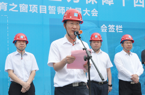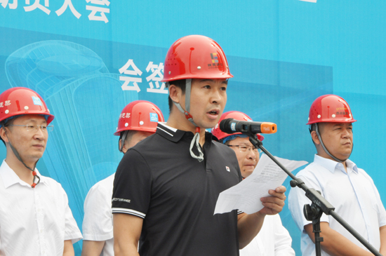 誓師大會上,中國建筑西北區域總部(中建絲路)總經理孔衛湘作動員,中建八局西北董事長段輝樂、陜旅建設公司常務副總、體育之窗項目總指揮王鵬以及工人代表作了表態發言。