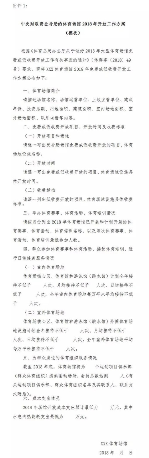 1.中央財政資金補助的體育場館2018年開放工作方案(模板)