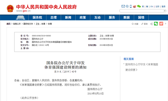 國務院辦公廳印發《體育強國建設綱要》