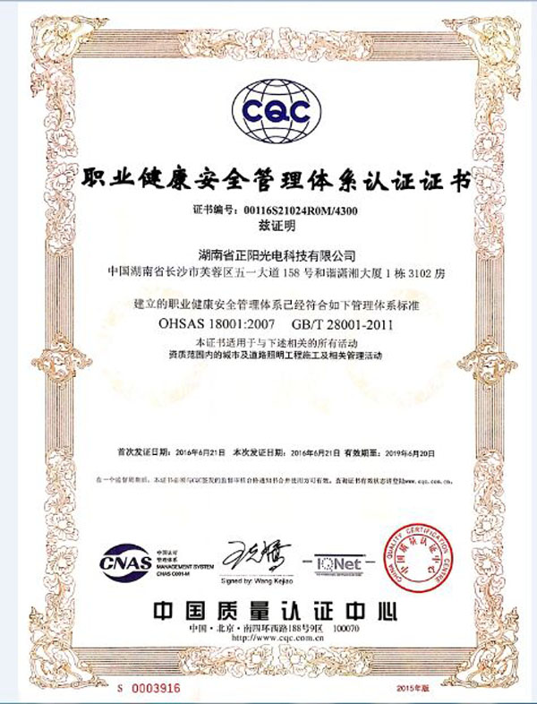 2016年6月27日,我公司順利通過(guò)OHSAS18001職業(yè)健康安全管理體系認(rèn)證